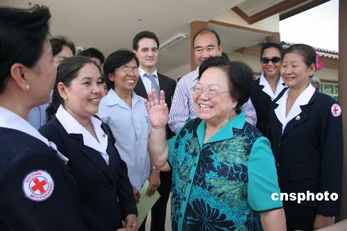 中國紅十字會會長彭珮云在“中泰紅十字友誼村”