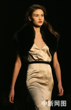 圖為模特在展示設(shè)計(jì)師Amanda Wakeley的作品。