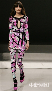 2006年2月20日,米蘭時(shí)裝周,一名模特正在展示意大利設(shè)計(jì)師Emilio Pucci 的2006/2007秋冬女裝作品。