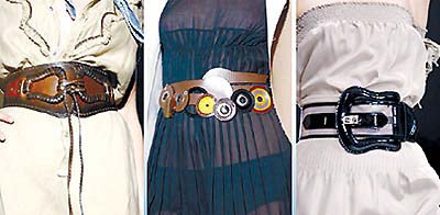 看過Fendi、Missoni、AlexanderMcQueen等品牌的春夏新裝,你會發(fā)現(xiàn)闊別已久的寬大腰封重新進入流行視野,而在各種時尚場合,擁有敏銳的時尚觸覺的女明星們也迫不及待地將寬大的腰帶高高束起,以盡顯美好身姿。如記者就親見Fendi一款巨大搭扣的黑色漆皮寬腰帶被眾多港臺女星輪番力撐。