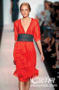 說到腰際風(fēng)情,首先必然要提及的就是將維多利亞式的奢華與充滿現(xiàn)代氣息的設(shè)計融為一體的高腰線。高腰線帶來年輕活潑的風(fēng)格,讓人顯得既高貴又可愛。今季,不少品牌都用寬大的腰帶束起高腰線,當(dāng)中多以粗獷的風(fēng)貌為主,可以看作弘揚復(fù)古精神的特別之選。