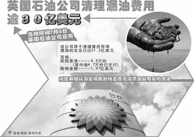 美國得克薩斯州官員5日證實(shí),該州東部海灘發(fā)現(xiàn)來自墨西哥灣漏油油井的油球。這意味著泄漏原油已擴(kuò)散至美國墨西哥灣沿岸所有5個(gè)州。隨著清理油污費(fèi)用的飆升,英國石油公司的經(jīng)營狀況也引起了廣泛猜測,該公司表示不準(zhǔn)備利用發(fā)行新股的方式引入戰(zhàn)略投資者,但將出售部分股份以籌集資金。