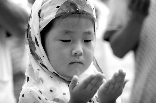 8月15日,一名穆斯林兒童在山東省郯城縣馬頭鎮(zhèn)清真寺哀悼甘肅舟曲特大山洪泥石流遇難同胞。