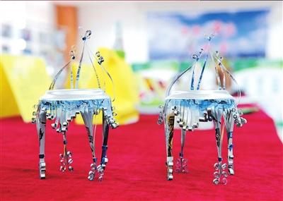前天,居民展示用易拉罐制作的裝飾品。近日,經(jīng)濟(jì)技術(shù)開發(fā)區(qū)居民原創(chuàng)低碳創(chuàng)意物品開始展出。承辦方大雄郁金香舍社區(qū)居委會(huì)工作人員介紹,此次活動(dòng)是經(jīng)濟(jì)技術(shù)開發(fā)區(qū)第5屆和諧社區(qū)文化節(jié)的一部分,希望通過此次活動(dòng)鼓勵(lì)居民們低碳生活,在生活中變廢為寶,發(fā)明環(huán)保小物品。