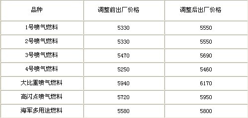 通知稱,根據(jù)近期國際市場油價變化情況,決定適當(dāng)提高航空煤油出廠價格(提高后的價格水平見表),自2010年10月26日零時起執(zhí)行。