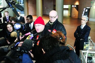 2010年2月21日,法國(guó)巴黎,法國(guó)工人總工會(huì)代表查爾斯·富拉爾在與道達(dá)爾管理層就結(jié)束為期6天的罷工談判后呼吁所有法國(guó)煉油廠罷工,并警告燃料短缺可能迫在眉睫。