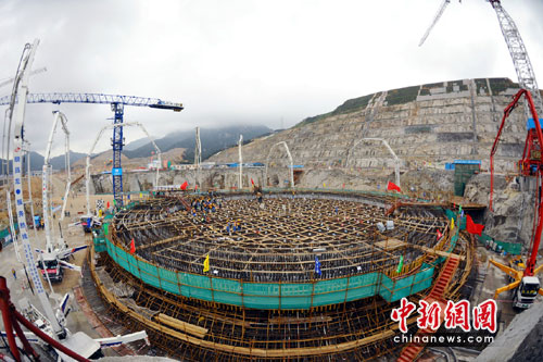 中新社江門4月15日電(記者 鄭小紅)核島主設(shè)備制造和建筑安裝全部由中國企業(yè)承擔(dān)廣東臺山核電站一期工程2號機(jī)組核島,4月15日開工建設(shè),澆筑核島筏基的第一罐混凝土。