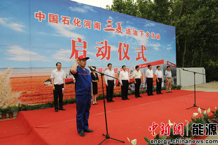章建華說:“請(qǐng)農(nóng)民朋友放心,中國(guó)石化一定能以優(yōu)質(zhì)的油品和優(yōu)良的服務(wù)承擔(dān)起保障三夏供油的光榮使命,以實(shí)際行動(dòng)為國(guó)家搞好夏收、夏種、夏管,實(shí)現(xiàn)夏糧豐收,為廣大農(nóng)民朋友增加收入做出應(yīng)有的貢獻(xiàn)!