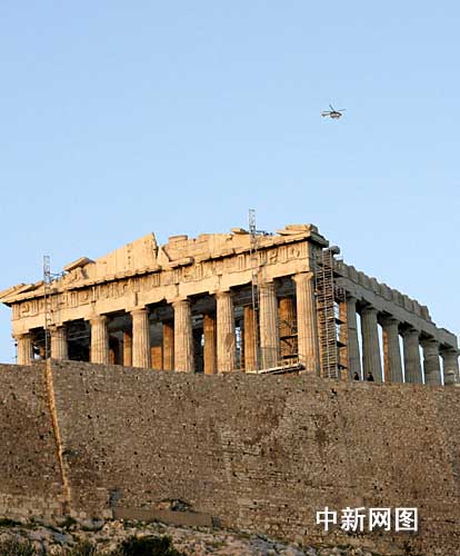 3月29日,北京奧運(yùn)圣火傳遞到希臘首都雅典,圣火將在衛(wèi)城著名的帕特農(nóng)神廟前停留一晚。圣火抵達(dá)前,直升飛機(jī)一直在衛(wèi)城上空盤旋。 中新社記者 王歡