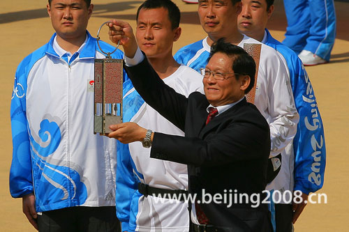 中新網(wǎng)雅典3月30日電 北京奧運(yùn)會(huì)圣火交接儀式在希臘當(dāng)?shù)貢r(shí)間15時(shí)(北京時(shí)間20時(shí))在泛雅典體育場(chǎng)舉行。在交接儀式上,北京奧組委主席劉淇從希臘奧委會(huì)主席基里亞庫(kù)手中接過(guò)奧運(yùn)會(huì)圣火,并點(diǎn)燃了火種燈。北京奧運(yùn)會(huì)火種燈隨即將登上專機(jī)回國(guó),并將于31日上午在北京舉行歡迎儀式。