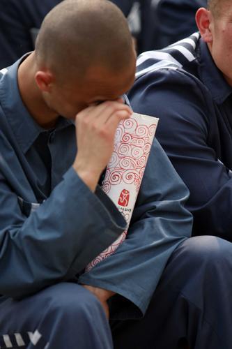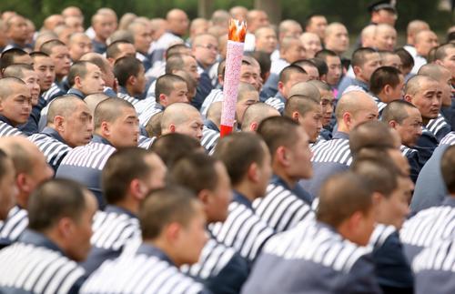 2008年5月6日,北京某監(jiān)獄,由服刑人員自制的祥云火炬在各監(jiān)區(qū)傳遞,而干警們則更希望這虛擬的圣火能照亮他們人生。