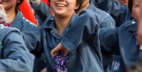 2008年5月6日,北京某監(jiān)獄,由服刑人員自制的祥云火炬在各監(jiān)區(qū)傳遞。女犯的笑容。