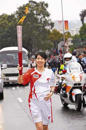 已懷孕7個半月的李穎詩,曾連續(xù)10年成為香港游泳項目的紀(jì)錄保持者,1994年更在廣島亞運中勇奪銀牌。運動員生涯過去了,她繼續(xù)為香港體育發(fā)展努力,現(xiàn)擔(dān)任運動推廣工作;她笑指去年報名參加火炬手甄選時還未懷孕,當(dāng)獲通知擔(dān)任第56棒火炬手時,她既感興奮,也擔(dān)心身體未能應(yīng)付,幸好獲醫(yī)生及家人的支持,終鼓起勇氣與女兒共度傳送圣火的歷史時刻,“傳送時女兒也在腹中團團轉(zhuǎn),手仔腳仔也在動,她陪著我一同完成了圣火傳送的任務(wù)”。