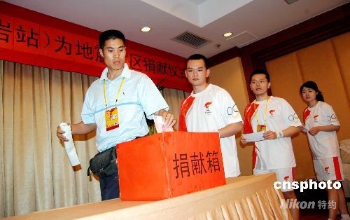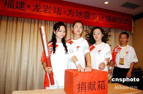 圖:福建龍巖火炬手為地震災區(qū)民眾捐款