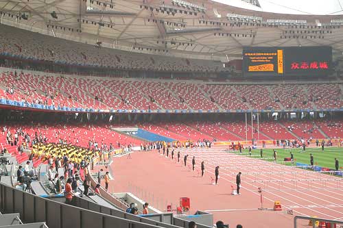 為了紀(jì)念在四川特大地震中的遇難者,今日開賽前,好運(yùn)北京2008年中國(guó)田徑公開賽的參賽運(yùn)動(dòng)員和工作人員在賽前默哀一分鐘。