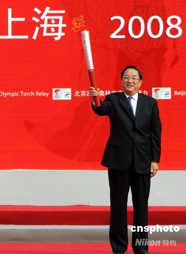 5月23日,中共中央政治局委員,中共上海市委書(shū)記俞正聲,出席北京奧運(yùn)會(huì)圣火上海傳遞起跑儀式。 中新社發(fā) 湯彥俊 攝