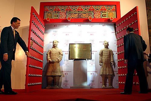 中新網(wǎng)6月3日電 北京奧運官網(wǎng)消息,從強生公司和秦始皇兵馬俑博物館聯(lián)合召開的新聞發(fā)布會上獲悉,2008年奧運會期間,國際奧委會全球合作伙伴強生公司設(shè)在奧林匹克中心區(qū)內(nèi)的奧林匹克展示中心將展出享譽全球的秦始皇兵馬俑真品。