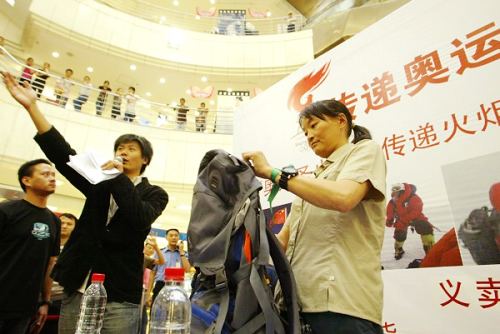 中新網(wǎng)6月9日電 6月7日下午,吉吉、李富慶、次洛等珠峰火炬手和中國(guó)登山隊(duì)形象大使譚維維現(xiàn)身成都,在王府井百貨商場(chǎng)的“傳遞奧運(yùn)精神,共建愛(ài)心家園”的愛(ài)心義賣會(huì)上,他們紛紛拿出了圣火登頂珠峰時(shí)的心愛(ài)之物義賣,并現(xiàn)場(chǎng)愛(ài)心簽售了圣火登頂主題歌《無(wú)法阻擋》的限量單曲碟,為成都傳媒集團(tuán)和成都餐飲同業(yè)公會(huì)發(fā)起組織的災(zāi)區(qū)“愛(ài)心食堂”添柴加火。