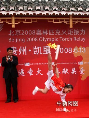 今天的第一棒火炬手是體操運(yùn)動(dòng)員、土家族姑娘林麗,她是貴州省在體操項(xiàng)目上第一個(gè)參加奧運(yùn)會(huì)的運(yùn)動(dòng)員。在2004年雅典奧運(yùn)會(huì)上,林麗被認(rèn)為是高低杠項(xiàng)目上的奪冠熱門(mén),最終卻發(fā)揮失常僅獲第七。“在自己的家鄉(xiāng)傳遞第一棒火炬,也算彌補(bǔ)了我在奧運(yùn)會(huì)上的遺憾!绷蛀愓f(shuō)。