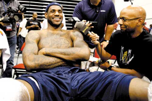 “這是一個全新的開始!闭材匪拐f道,與2004年相比,他將身穿不同號碼。詹姆斯將在北京身穿6號球衣,而韋德從6號換為9號,布澤爾從7號變?yōu)?號,安東尼則從8號變?yōu)?5號。在訓練中,美國隊并沒有太多的新聞,不過他們有一些不錯的消息。例如,雖然中鋒德懷特-霍華德因為胸骨傷勢缺席訓練,但是他應該可以在下個月的訓練營中做好準備。