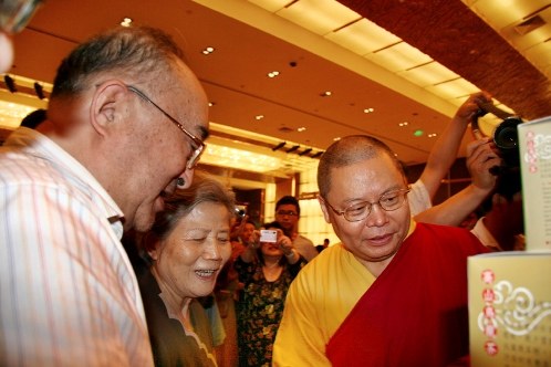臺灣佛法山開山宗長圣輪法師所栽植生產(chǎn)的“一炮龍”有機茶獲得“中國申奧第一茶”稱號,原國家體委主任伍紹祖參觀了臺灣有機茶展位。