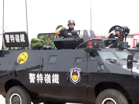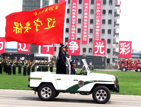 出警儀式上,遼寧省公安廳、沈陽(yáng)軍區(qū)、遼寧省武警總隊(duì)等單位進(jìn)行了力量集結(jié)拉動(dòng)展示。1326名隊(duì)員齊聲高呼著口號(hào),迅速開始登車。寬闊的跑道上警燈閃爍,精神飽滿的公安特警方隊(duì),整齊威武的武警持槍方隊(duì),軍容嚴(yán)整的人民解放軍方隊(duì)以及由特種裝備車、輕型裝甲車、運(yùn)兵車、照明車、防化車、特種偵察車、炊事車、特戰(zhàn)車、防彈車、突擊沖鋒車、水炮車、宿營(yíng)運(yùn)兵車、裝甲運(yùn)兵車、防核生化車等119臺(tái)車輛組成的共26支方隊(duì)依次通過(guò)主席臺(tái),經(jīng)過(guò)市區(qū)主要街路,駛往沈陽(yáng)奧體中心。