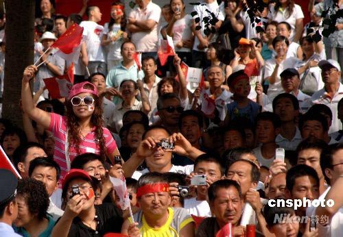 圖:長(zhǎng)春市民熱情迎接奧運(yùn)圣火