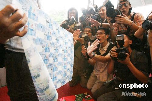 圖:奧運(yùn)紀(jì)念鈔票在香港火爆開售