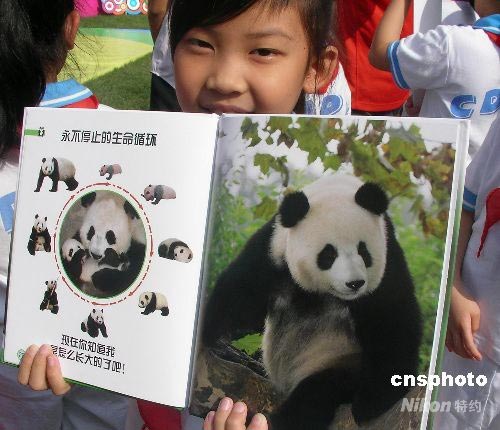 7月16日上午,全球首本由奧運(yùn)大熊貓“晶晶”擔(dān)任主角的科普?qǐng)D書(shū)——《我是晶晶-熊貓成長(zhǎng)寫(xiě)真》中文版在成都大熊貓繁育研究基地舉行了全球首發(fā)儀式。該書(shū)歷時(shí)兩年策劃、設(shè)計(jì),由企鵝集團(tuán)著名的多林金德斯利公司著,童趣出版有限公司編譯,人民郵電出版社出版發(fā)行。為表達(dá)對(duì)震后四川、成都的關(guān)愛(ài),該書(shū)的全球首發(fā)儀式安排在成都舉行。中新社發(fā) 楊杰 攝