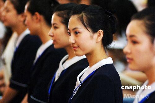 7月16日,北京奧組委志愿者部副部長李世新在北京接受媒體采訪時表示,將有10萬志愿者服務(wù)北京奧運,來自98個國家和地區(qū)。圖為志愿者正在接受培訓(xùn)。中新社發(fā) 王東明 攝