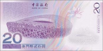 北京2008年奧運(yùn)會(huì)澳門幣紀(jì)念鈔票背面。