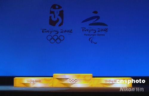 7月17日晚,北京奧運(yùn)會(huì)頒獎(jiǎng)臺在北京798藝術(shù)中心正式發(fā)布。 中新社發(fā) 王東明 攝