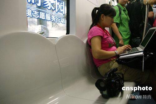 據(jù)地鐵工作人員介紹,地鐵10號(hào)線(xiàn)新車(chē)的座椅靠背升高了15到20厘米,而且是圓弧形的,乘客乘坐起來(lái)將更加舒適。中新社發(fā) 富田 攝