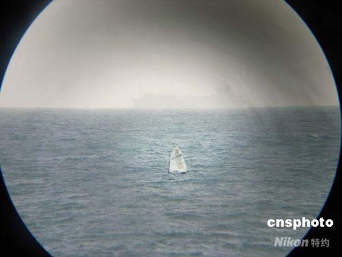 7月中旬,攝影者通過賽場里觀眾使用的望遠(yuǎn)鏡遠(yuǎn)眺青島奧帆賽場運(yùn)動(dòng)員訓(xùn)練。 中新社發(fā) 廖攀 攝