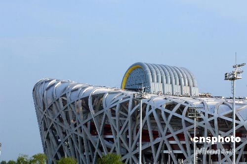 近日,“鳥巢”東北角隆起的“大包”頗為引人關(guān)注,這個“大包”顏色與鳥巢顏色接近,呈圓拱狀,在圓拱形的覆蓋物外,還有一圈黃色裝飾,認(rèn)真觀察發(fā)現(xiàn)這個“大包”不過是一層“偽裝”,透過氣孔的覆蓋物可以看到裝置中間部分是一個陰影。這個“大包”屹立于鳥巢之上,成為鳥巢最為醒目的標(biāo)志,因此有人懷疑這是北京奧運(yùn)會主火炬臺。中新社發(fā) 王東明 攝