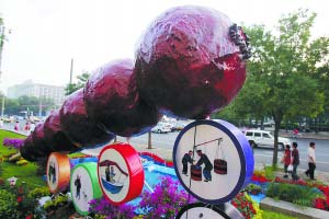 在天安門廣場西側(cè),記者看到鐵藝的“彩虹橋”上有一個(gè)個(gè)小圓圈。據(jù)了解,在這一個(gè)個(gè)小圓圈上將擺上多種花草,組成“彩虹”。趙凱軍說,組字的用花非常講究,不僅要考慮配色,還要考慮花期和抗曬、抗雨性。花木公司研究所副所長陳菊是這方面的專家。據(jù)她介紹,七八月份的北京濕熱、干熱交替,他們在奧運(yùn)期間擺的花都是適用性極好的品種,如非洲鳳仙、四季海棠、夏堇等。