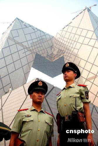 7月23日,北京武警正式進(jìn)駐中央電視臺新址,開始擔(dān)負(fù)中央電視臺的安全保衛(wèi)任務(wù)。奧運電視報道新聞中心近日將在中央電視臺新址開始啟用。中新社發(fā) 楊慧峰 攝