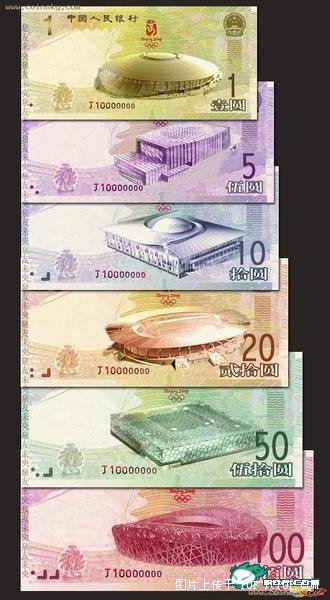 網(wǎng)絡(luò)上流傳的成套“奧運(yùn)紀(jì)念鈔”圖片