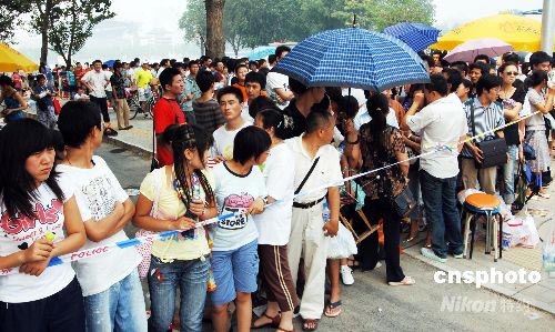 圖:民眾冒酷暑等待購買最后一批奧運(yùn)門票