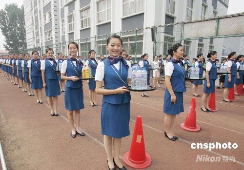 七月二十四日,北京氣溫最高三十四攝氏度。約一千五百名奧運(yùn)場(chǎng)館貴賓服務(wù)志愿者,在操場(chǎng)面帶笑容進(jìn)行培訓(xùn)。賽時(shí),該批志愿者將在“鳥(niǎo)巢”、曲棍球場(chǎng)、射箭場(chǎng)和網(wǎng)球中心等四個(gè)奧運(yùn)場(chǎng)館,提供茶點(diǎn)和餐飲食品的售賣(mài)服務(wù)。中新社發(fā) 杜燕 攝