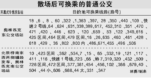 記者注意到,開幕式公共交通保障方案分為入場和散場兩部分。尤其在散場部分,更是調(diào)整了百條公交線路,進行二次疏散。“此舉是為了讓觀眾,能夠快速地從奧運中心區(qū)走出來,并把他們運送到全市各個地方!笔薪煌ㄎ嚓P(guān)負責人表示,公交專線的服務時間將延遲到觀眾全部疏散完畢為止。