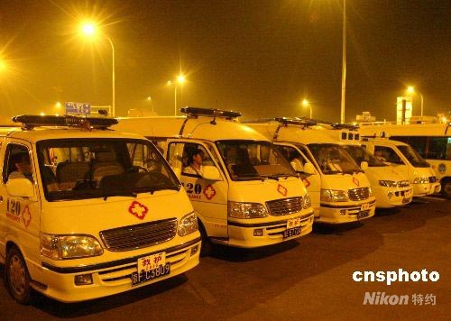 圖:奧運(yùn)門票購(gòu)買點(diǎn)前救護(hù)車隨時(shí)待命