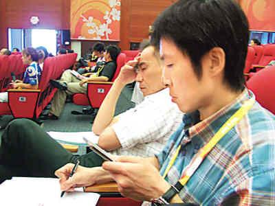 新聞發(fā)布會上,只見《讀賣新聞》的記者小島與同事埋頭奮筆疾書,記錄著奧組委通報的北京綠化美化工作內容。他說,在采訪今年奧運會籌備情況的過程中,個人最關注的還是氣候問題!叭ツ,我第一次來北京時,空氣質量不是很好、氣候比較干燥。這次來,整個城市綠化的地方變多了,也沒覺得很缺水!眳⒓恿藥讏鰥W組委新聞發(fā)布會以后,他表示,“我看到了中國政府的努力,更希望這些政策、措施能夠取得成效!