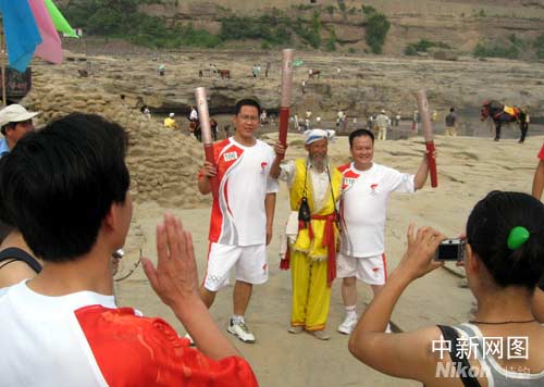 在壺口邊牽著毛驢為游客服務(wù)的張國華老人手捧火炬高興的合不攏嘴,嚷著要攝影師多拍幾張,說去不了北京能與火炬合個(gè)影也算圓了奧運(yùn)夢。一對湊巧正在壺口邊拍攝婚紗照的新人更是不放過這個(gè)千載難逢的機(jī)會,舉著火炬擺出各種造型,讓攝影師用鏡頭紀(jì)錄下他們與“祥云”親密接觸的難忘時(shí)刻。(完)