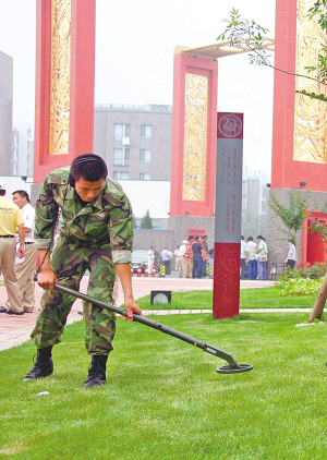 安保人員正在進(jìn)行金屬探測(cè)。