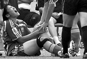 經(jīng)過專家會(huì)診,基本確定馬曉旭為左膝十字韌帶撕裂,打奧運(yùn)會(huì)已經(jīng)不可能。昨晚18時(shí)50分,馬曉旭被女足隊(duì)醫(yī)背上了出租車,返回了足校。隊(duì)員和教練都到房間里進(jìn)行了安慰,但卻換不回馬曉旭的一絲笑容。今日,她將來北京做進(jìn)一步檢查。