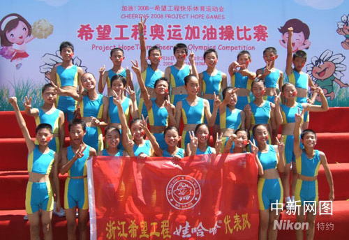 中新網(wǎng)杭州7月31日電(見習記者 張潔)近日,在 “加油!2008——全國希望工程快樂體育運動會”上,浙江省娃哈哈希望小學代表隊一舉拿下了全國奧運加油操特等獎,以一種特殊的方式為北京奧運會加油,這讓貧困山區(qū)的孩子享受體育的快樂,感受奧運的濃厚氛圍。