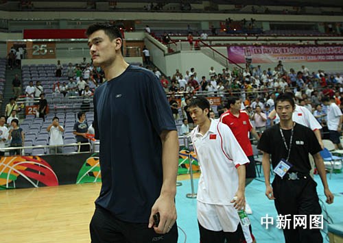 姚明坐在球員區(qū)的第一排,表情輕松,看來他心情還不錯。他的右邊是中國男籃的外籍助教,主教練尤納斯緊挨著他的左邊坐下,而姚明的國家隊好友劉煒則坐在他后面,方便交流。易建聯(lián)和王治郅坐在另外一邊,開始看比賽的易建聯(lián)臉色有些陰郁,顯然昨天的比賽中得分吞零蛋至今還讓他耿耿于懷,不過王治郅卻顯得心情開朗,笑容滿面,雖然他在對澳大利亞隊的那場比賽中也不過得到四分。