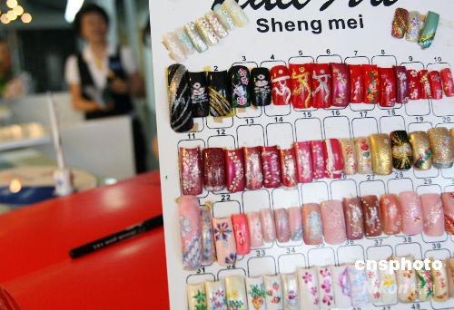 圖:奧運(yùn)村美發(fā)沙龍的“中國印”美甲