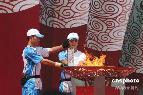 8月2日,奧運(yùn)火炬結(jié)束在天津中心城區(qū)傳遞。當(dāng)日下午,“祥云”火炬將搭乘“奧運(yùn)圣火號(hào)”,轉(zhuǎn)場(chǎng)四川。中新社發(fā) 郭曉帆 攝